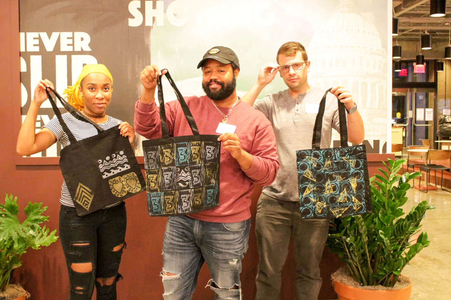 We loved seeing everyone's unique designs and the way they used different colors and patterns to decorate their tote bags. Each attendee got to take home their stamp -- we can't wait to see how else they use them!