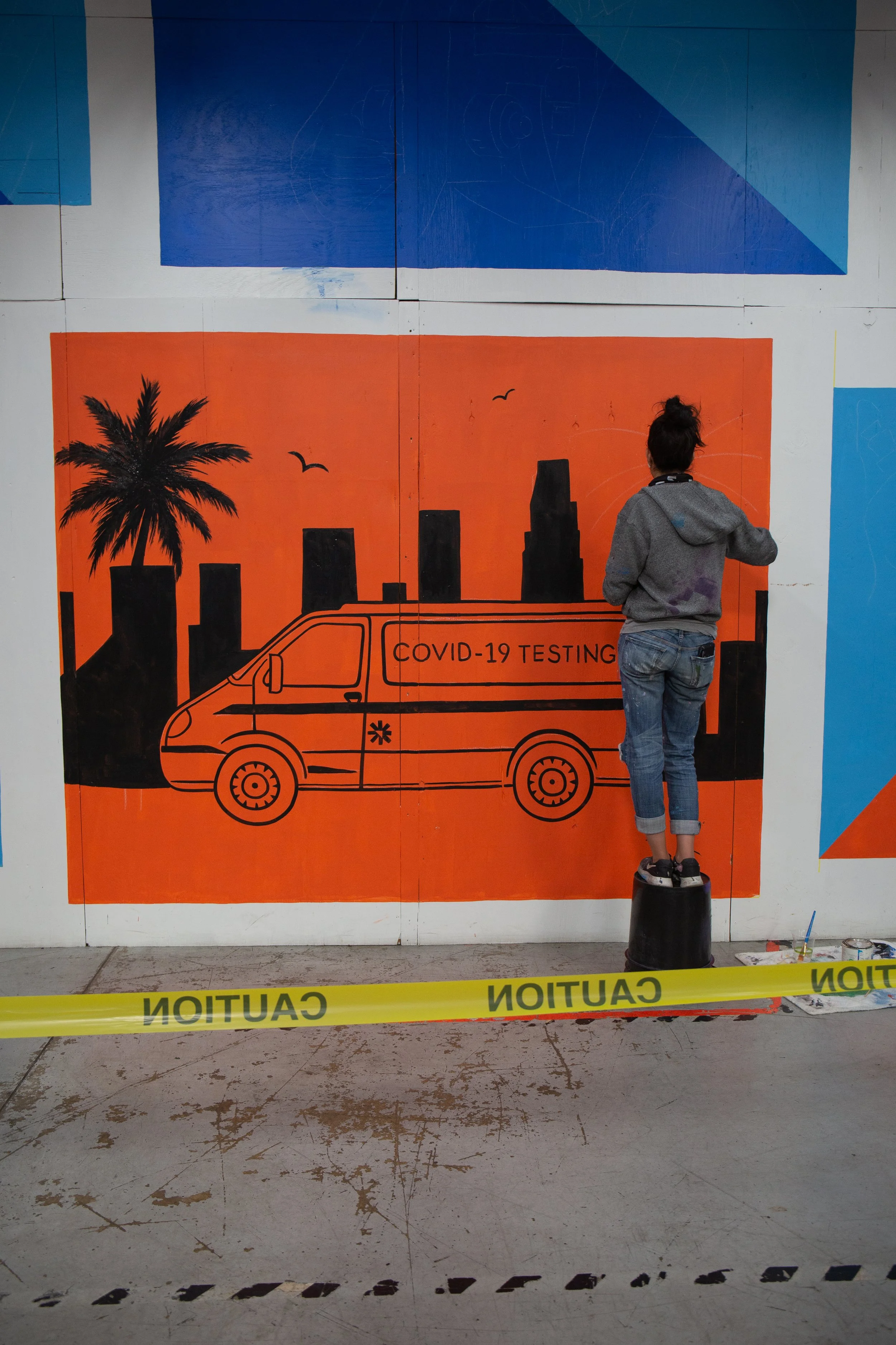 We researched artists, curated artwork, and oversaw production for a site-specific mural for the Break Room at Curative’s Corporate Lab. The imagery is inspired by the client’s business and a day-in-the-life of an employee. We worked with the artist to visualize both the client’s work and their impact on their community and the fight against COVID-19.